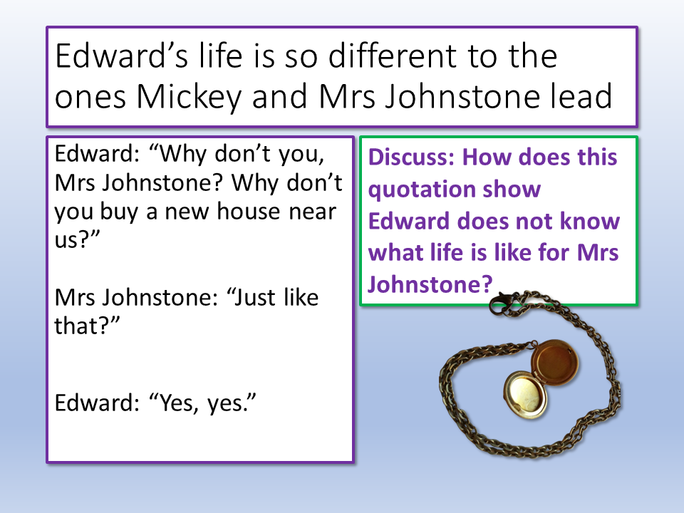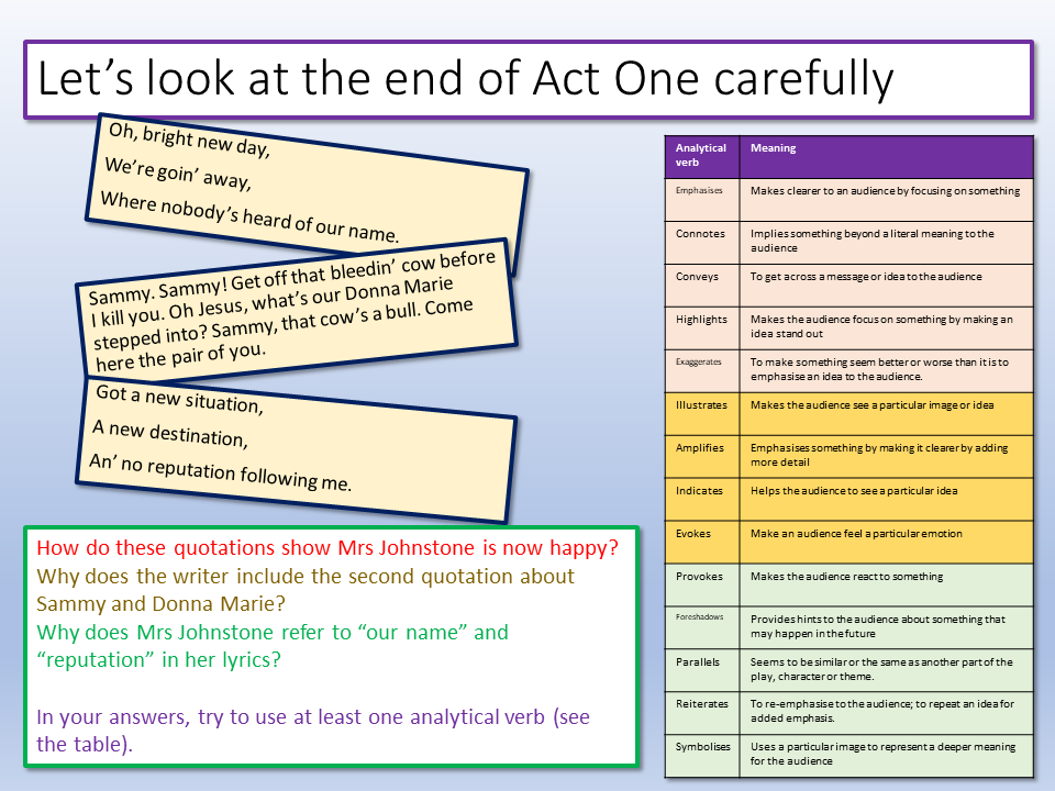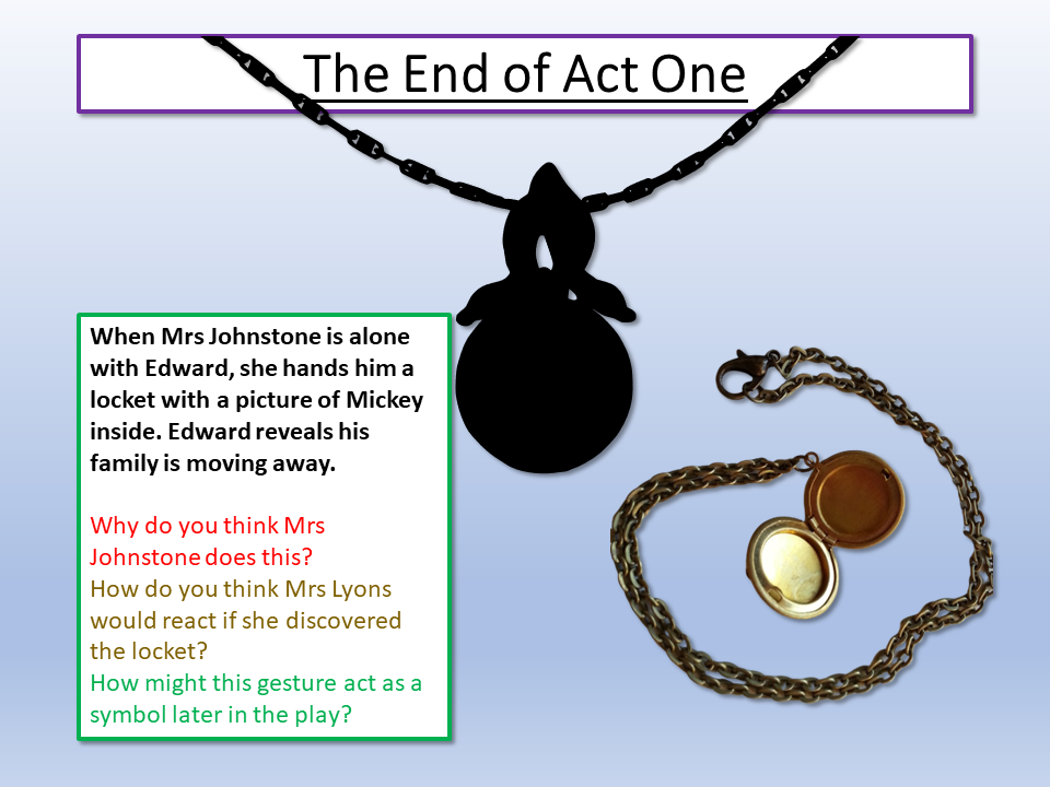 Blood Brothers lesson that explores how Act One ends as the Johnstones prepare to move to Skelmersdale. We look at how the writer is able to establish comedy and which comedic elements are included, as well as exploring the contrast between the lives of the Johnstones and the Lyons. A really useful lesson for students preparing for AQA English Literature Paper 2 and other exam boards like EDUQAS, WJEC, Edexcel, OCR and more as we study Willy Russell’s fantastic play.