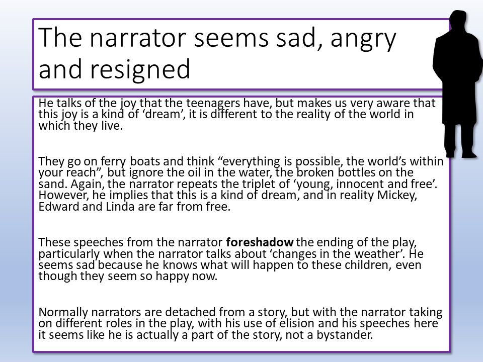 Blood Brothers lesson that explores how Act Two builds tension through the narrator and use of foreshadowing as we find out more about the teenage lives of Mickey, Edward and Linda. We look at a range of dramatic techniques Willy Russell uses in order to engage his audience and how he did so. A really useful lesson for students preparing for AQA English Literature Paper 2 and other exam boards like EDUQAS, WJEC, Edexcel, OCR and more as we study Willy Russell’s fantastic play.