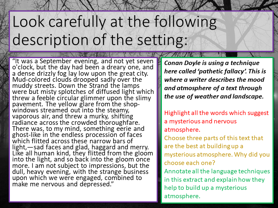 Sign of Four - A fully differentiated and resourced lesson that looks at the third chapter of The Sign of Four by Sir Arthur Conan Doyle. when we learn more about the case of Miss Morstan’s missing father and analyse how a sense of mystery is about throughout the chapter. Ideal preparation for both KS3 and KS4 students preparing for new spec English Literature GCSEs.