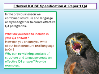 Edexcel IGCSE English Language Paper 1 Section A Q4 lesson, exploring an extract from H is for Hawk by Helen Macdonald (from the anthology for component 1).