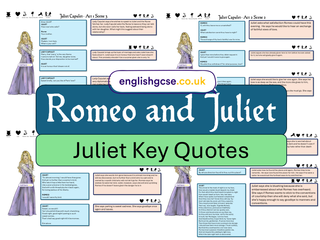 Romeo and Juliet William Shakespeare Juliet Capulet quotes analysed - 85 quotations with explanations and theme links. Perfect for revision, displays, homework, intervention and more for GCSE English Literature exams and assessments.
