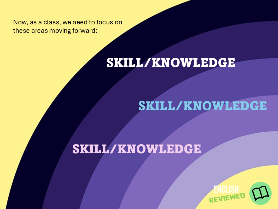 Using streaming services and their end of year reviews as inspiration, this whole class and individual feedback resources provides a fun and relevant way of sharing progress, areas of strength and areas to improve on. It includes a PowerPoint template which can be edited to include your class, your term, your whole class strengths and areas to improve and subject areas that have been focused on throughout the whole term. The PowerPoint uses colourful graphics, fonts, animations, transitions and music to help engage students so they can reflect on their learning. It has been designed for English at KS3 and KS4, but could easily be adapted for any subject/curriculum area. Have a query or question? Get in touch at info@englishgcse.co.uk