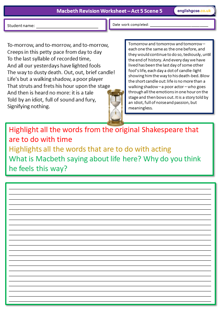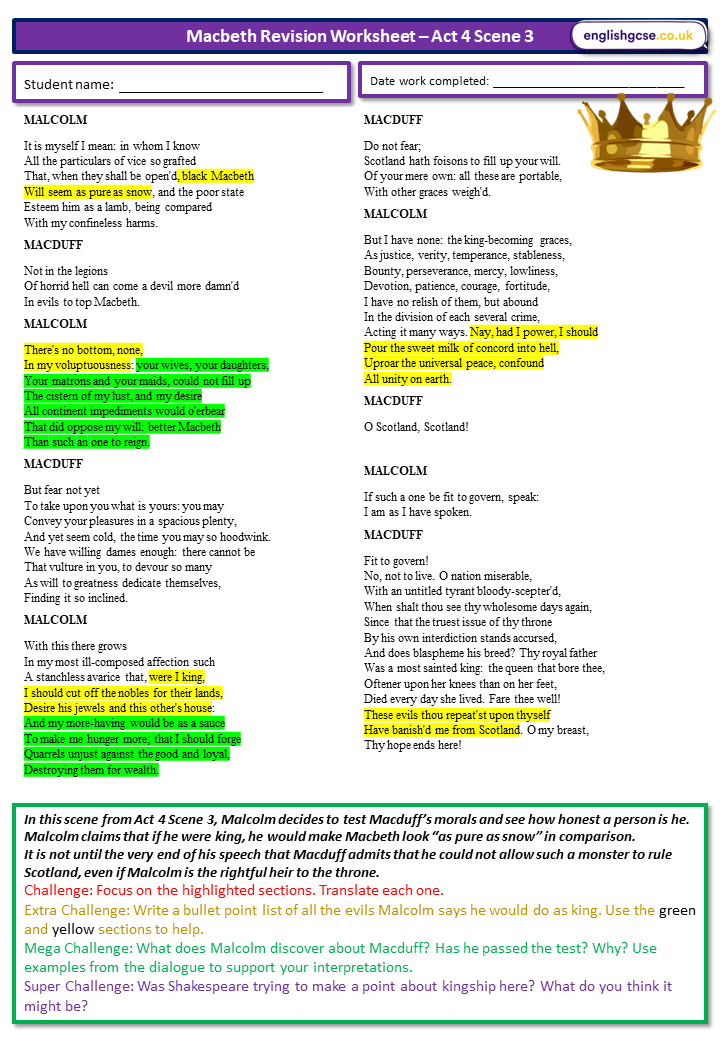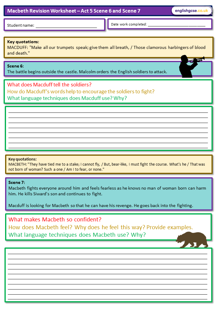 Macbeth Revision Worksheets