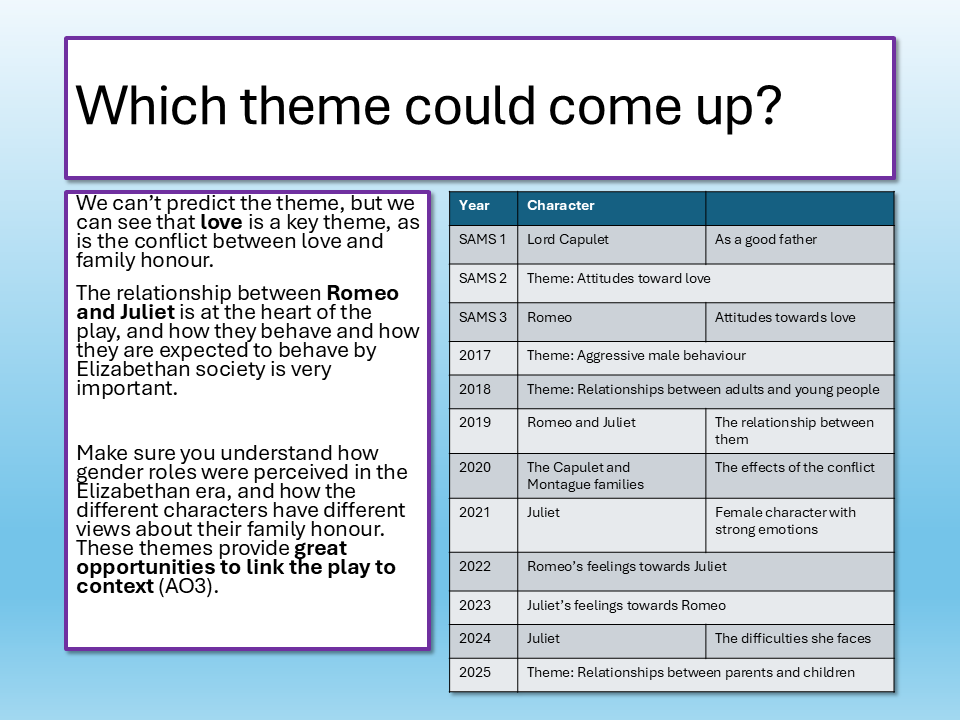 This pack includes all of the key themes and characters use in every exam paper from 2017 until 2025, as well as the SAMS papers (sample assessment materials).