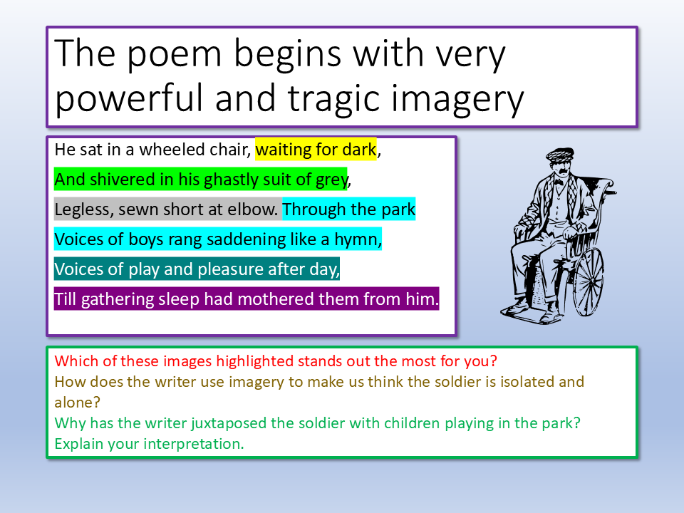 Wilfred Owen Disabled Edexcel IGCSE English Language Paper 2 one hour lesson for Poetry and Prose Texts.